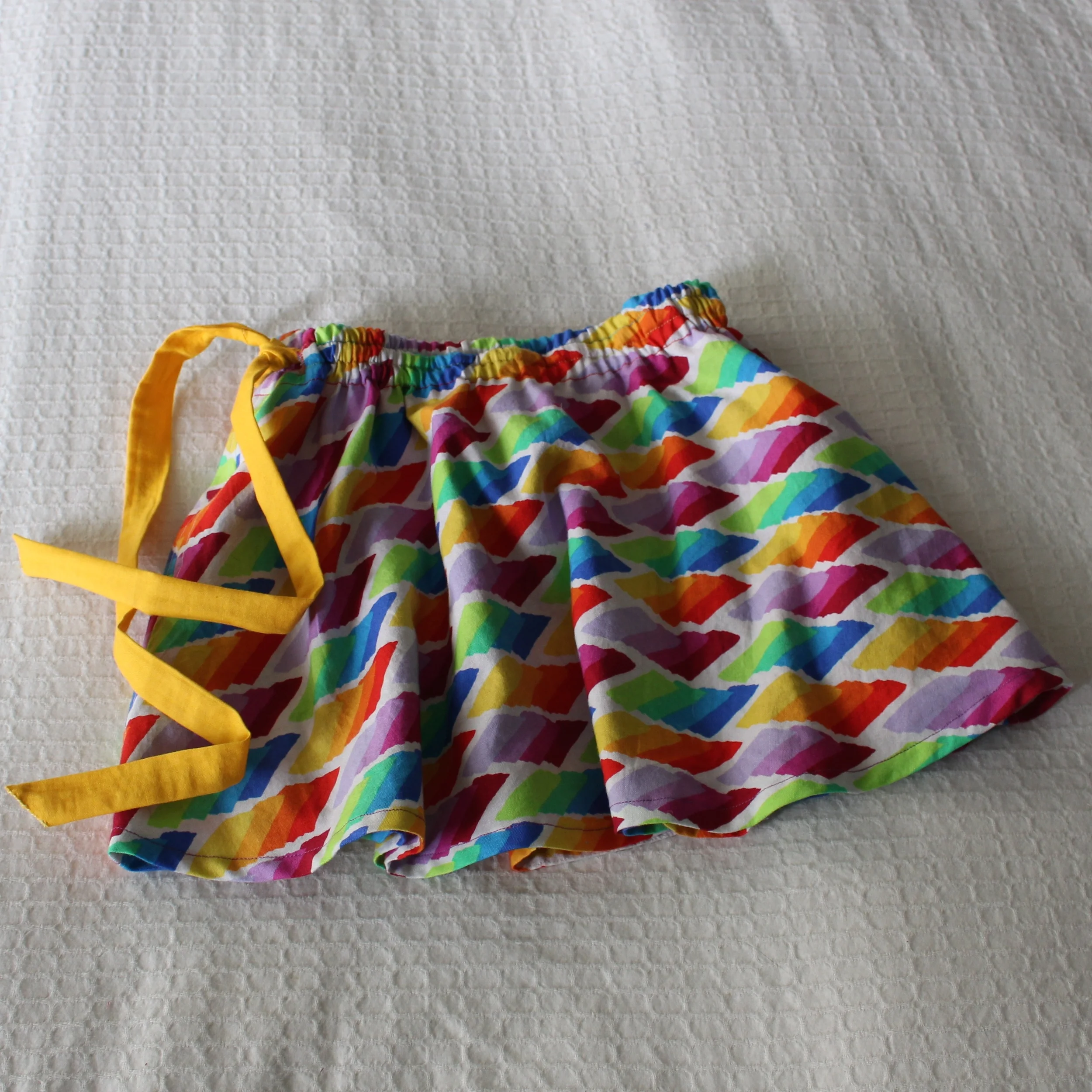 given the significance of the day i was excited to make something for my nieces with it, but what? frozen with indecision the fabric just sat in my stash for months. then this fall maya specifically requested a rainbow skirt and i knew it was meant to be.