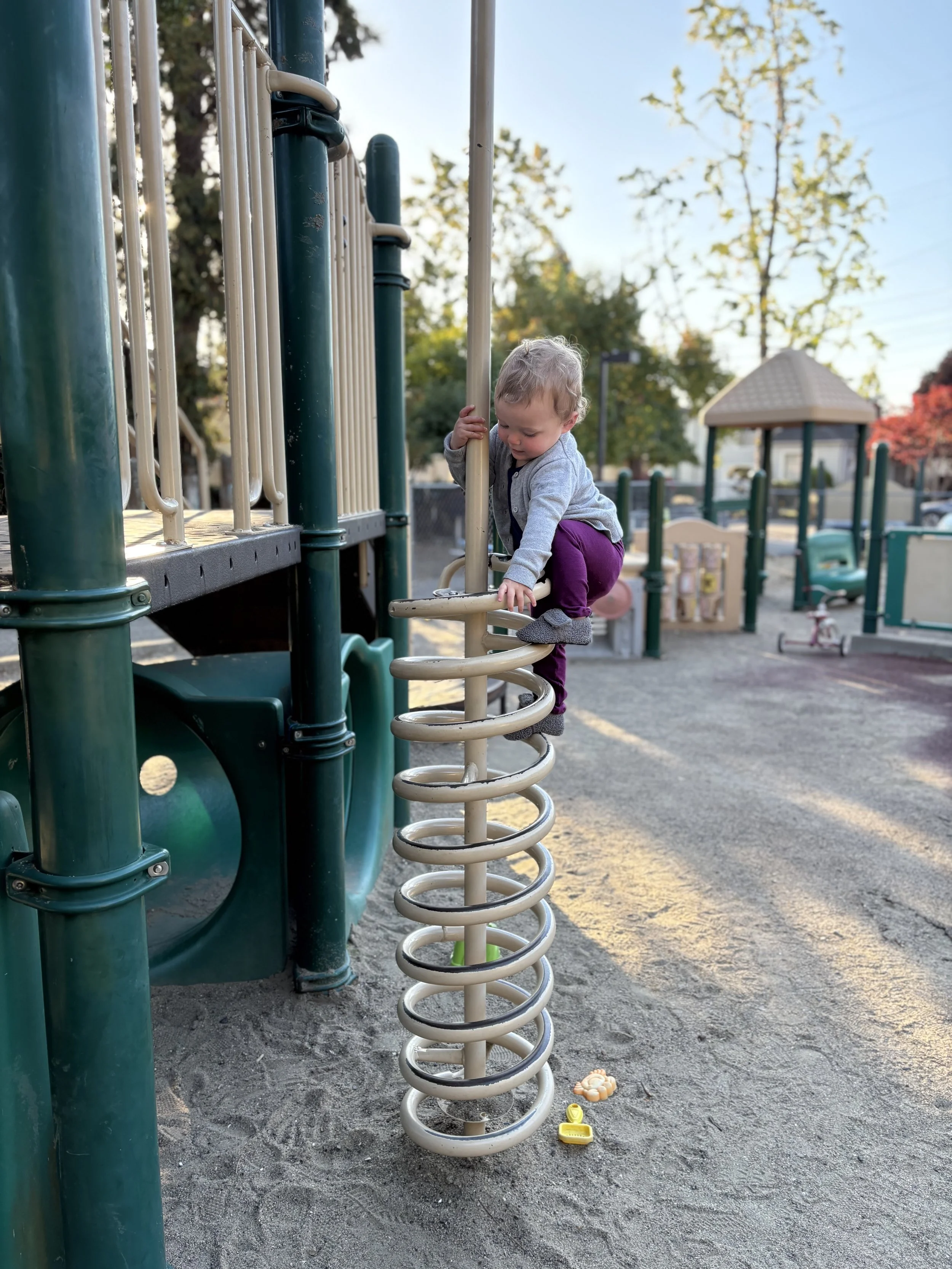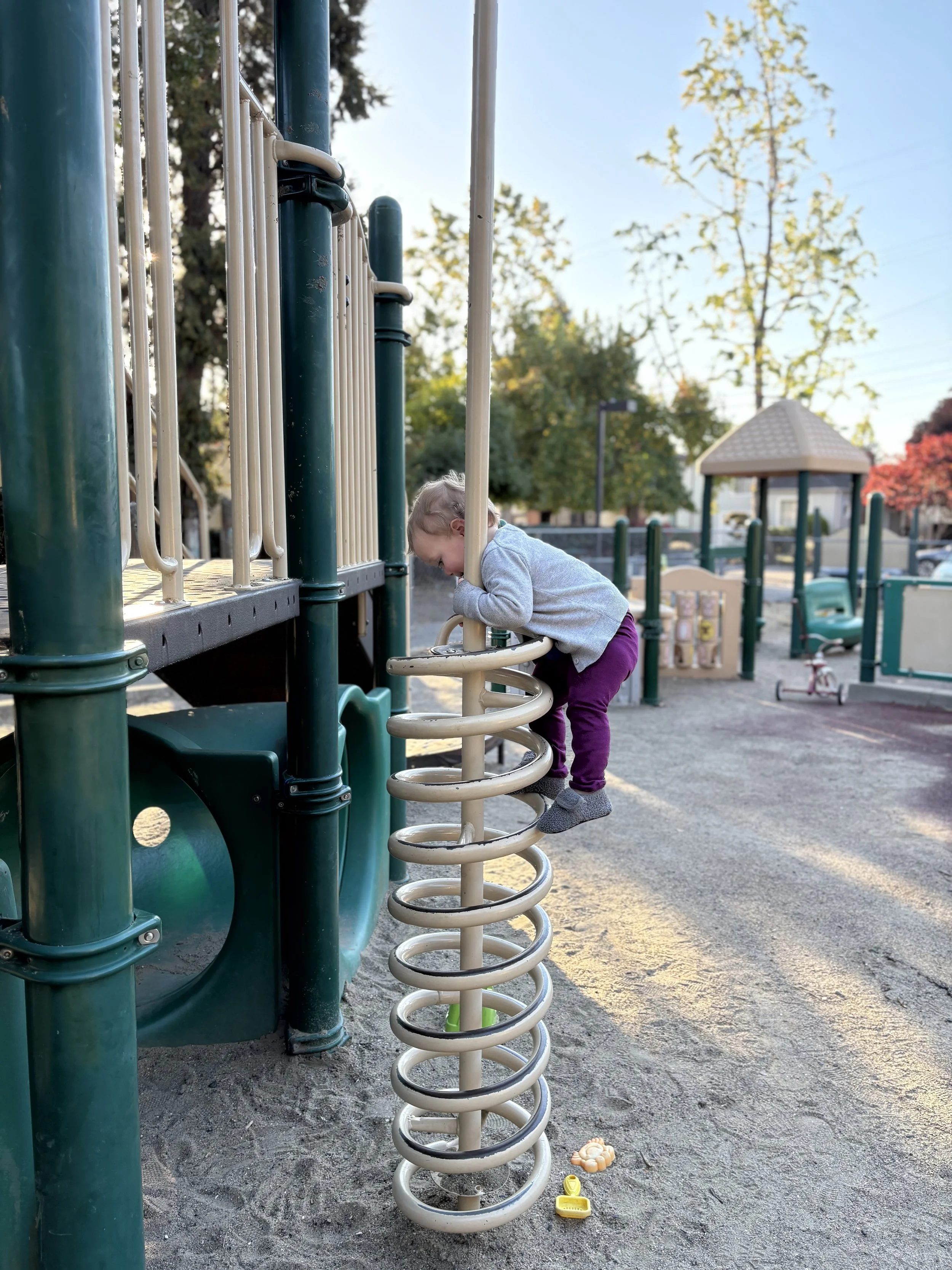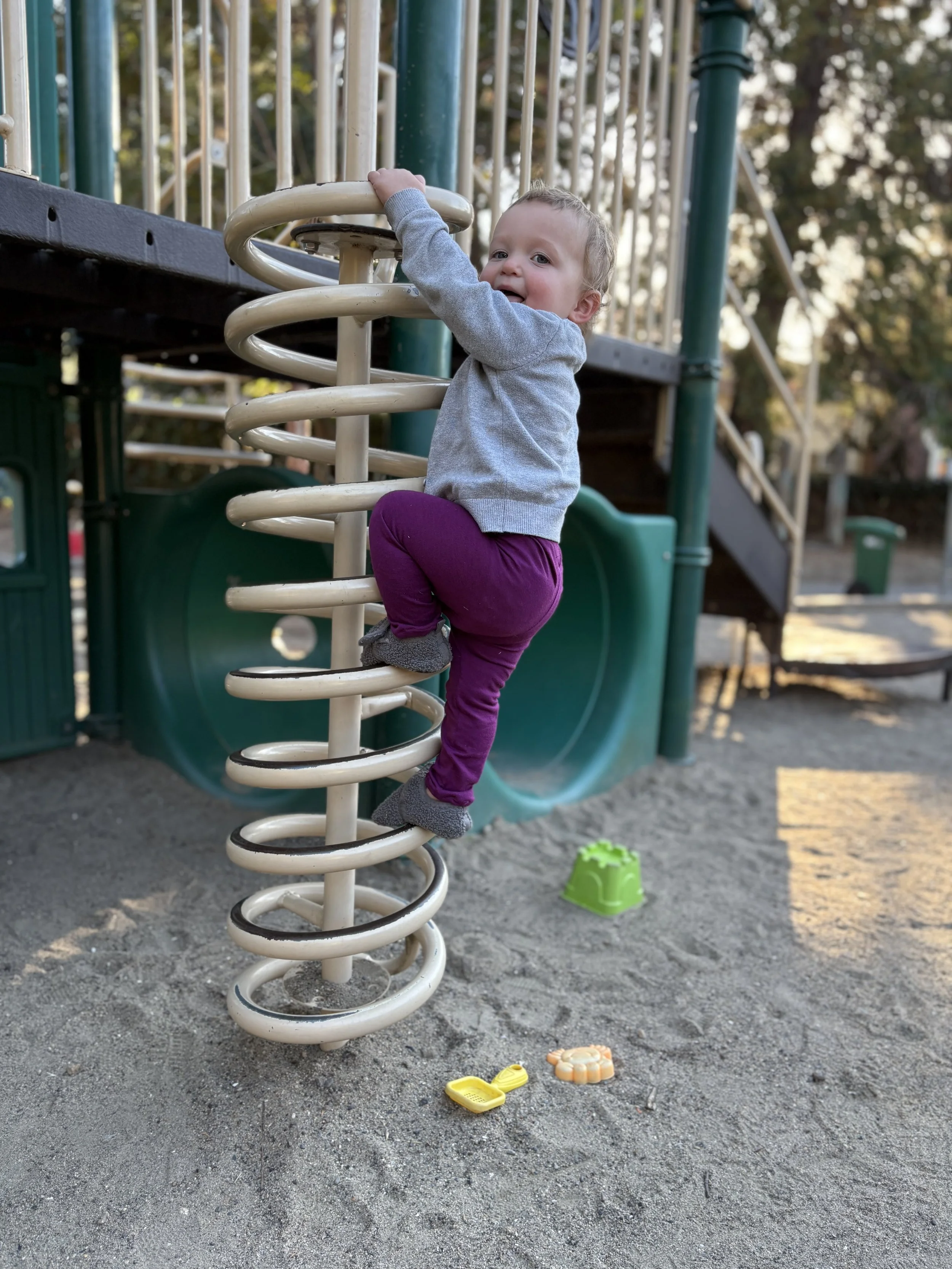 climb on baby girl. female bodily autonomy may be completely obsolete by the time you start kindergarten, but i know you will challenge it, just you challenged the 2-5 year age recommendation of this play structure.
